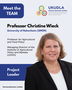 Professor Dr Christine Wieck is the Managing Director of the Institute of Agricultural Policy and Markets, as well as professor in and the Head of the Department of Agricultural and Food Policy at the University of Hohenheim, Germany.Her research focus is on the quantitative and qualitative analysis of the sustainable transformation of food systems in open and global markets. She works on projects related to due diligence impacts on cross-border agri-food value chains, biodiversity-related agri-food policy, EU animal welfare legislation, and EU and South African food policy analysis.