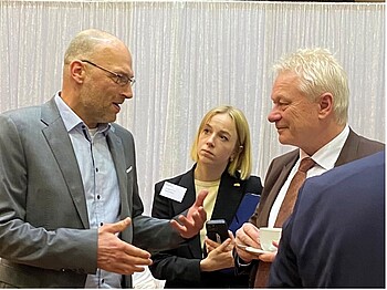 UKUDLA Projektmanager Dr. Marcus Giese im Gespräch mit Bundesminister Alois Rainer. Anlässlich des Besuchs des Deutsch-Afrikanischen Fachzentrums UKUDLA an der University of the Western Cape in Kapstadt wurde die Bedeutung internationaler Agrarforschung hervorgehoben, bei der die Universität Hohenheim eine führende Rolle in Deutschland spielt. // UKUDLA Project Manager Dr. Marcus Giese in conversation with Federal Minister Alois Rainer. During the Minister’s visit to the German African Centre of Excellence UKUDLA at the University of the Western Cape in Cape Town, the importance of international agricultural research was highlighted, a field in which the University of Hohenheim plays a leading role in Germany. // BM Alois Rainer, Dr. Marcus Giese und Dr. Kimon Kieslich anlässlich des Ministerbesuchs am Deutsch-Afrikanischen Fachzentrums UKUDLA an der University of the Western Cape, Kapstadt, Südafrika.